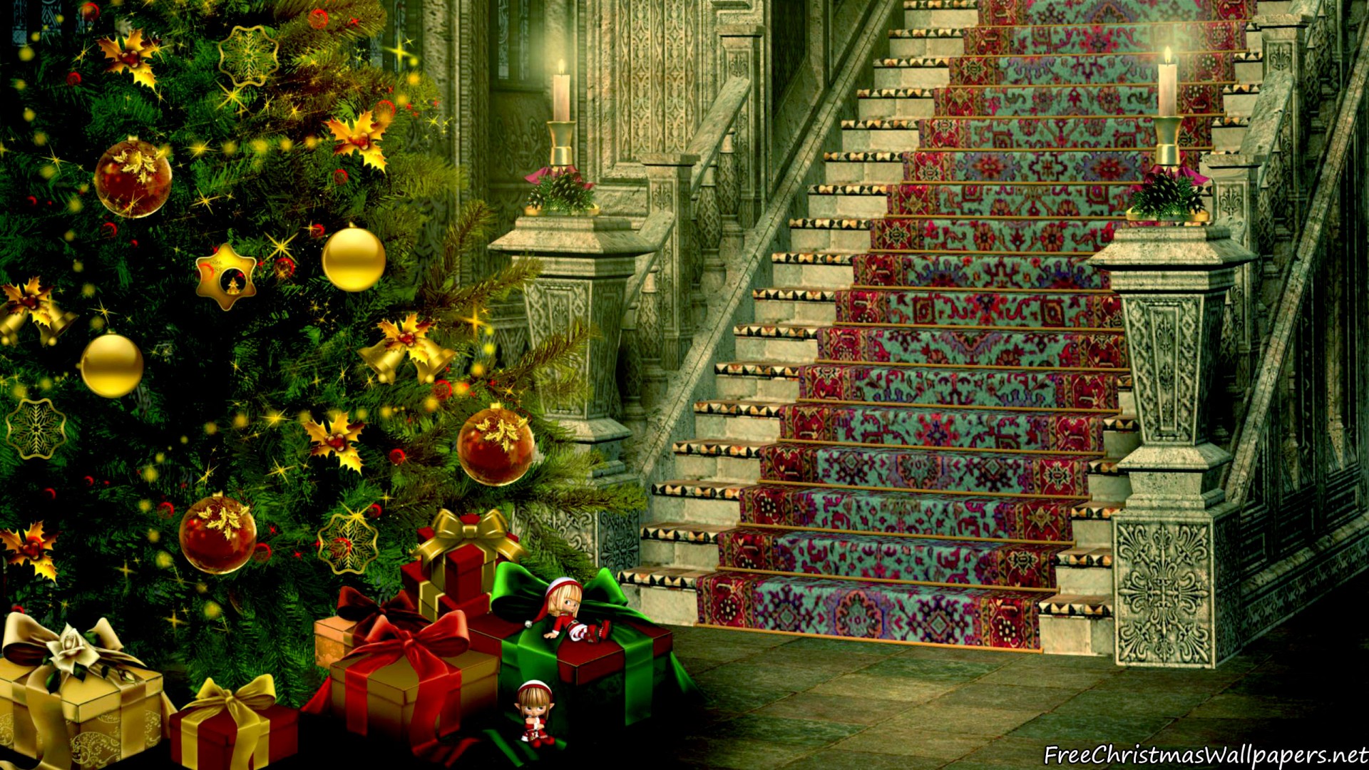 Christmas Stairs Decoration - 1920x1080 (1080p)