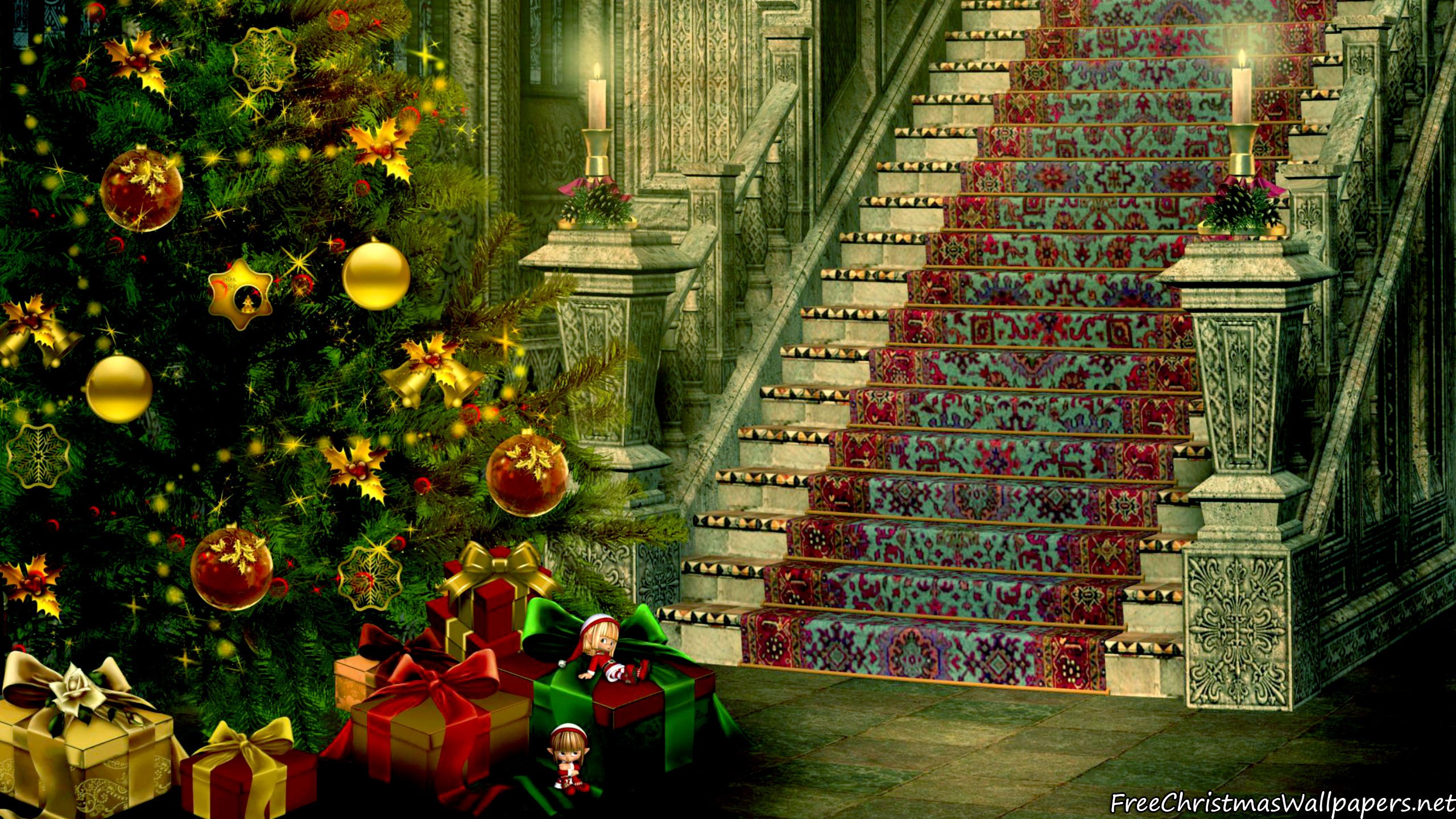Christmas Stairs Decoration - 2560x1440