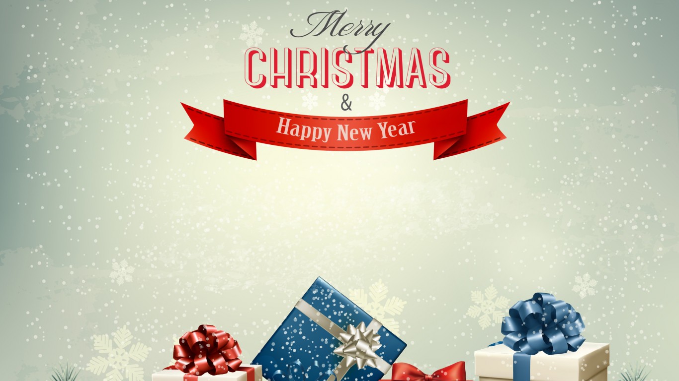 Merry Christmas And Happy New Year Presents - 1366x768