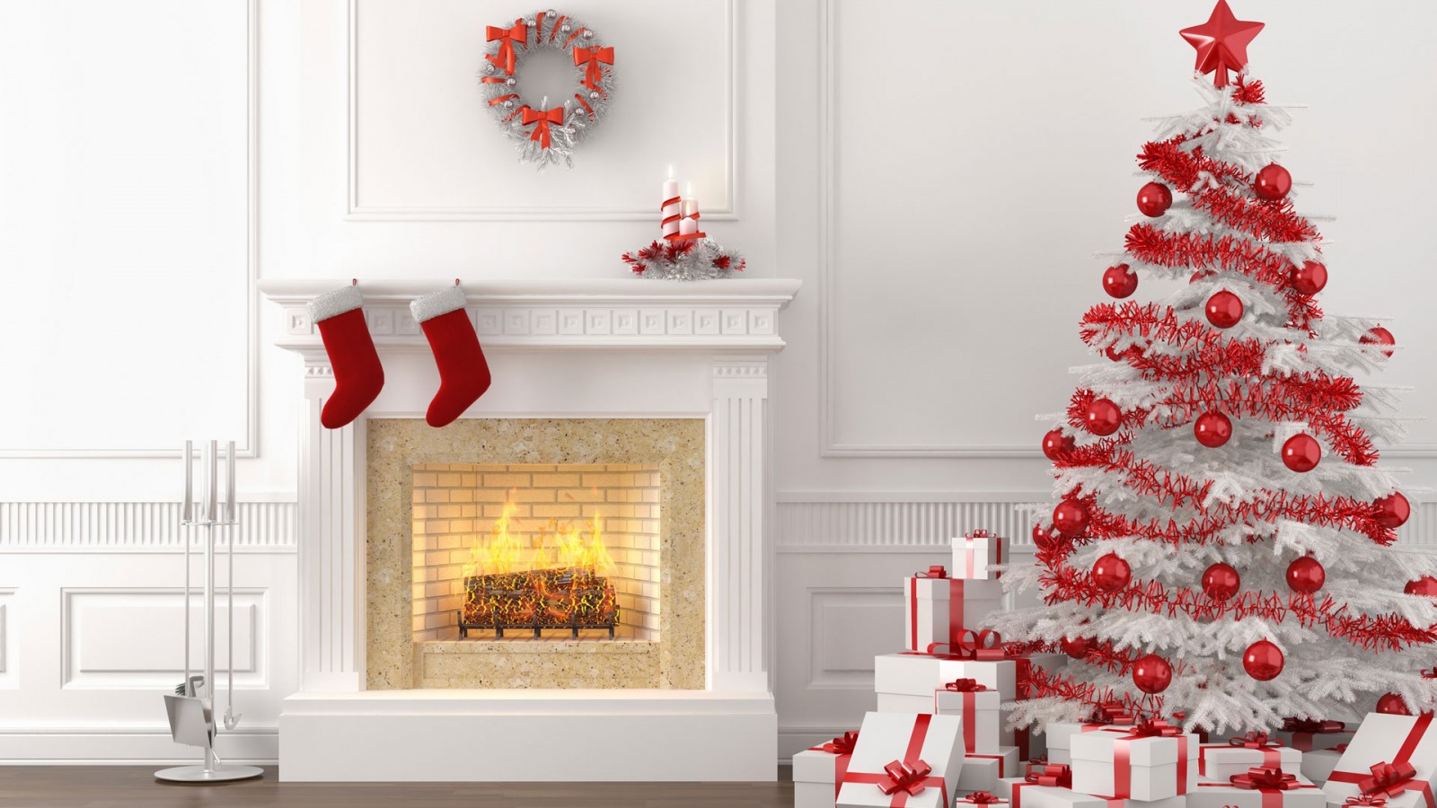 White Christmas Fireplace - 1600x900