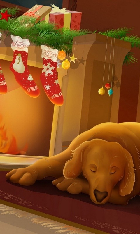 Sleepy Christmas Dog - 480x800