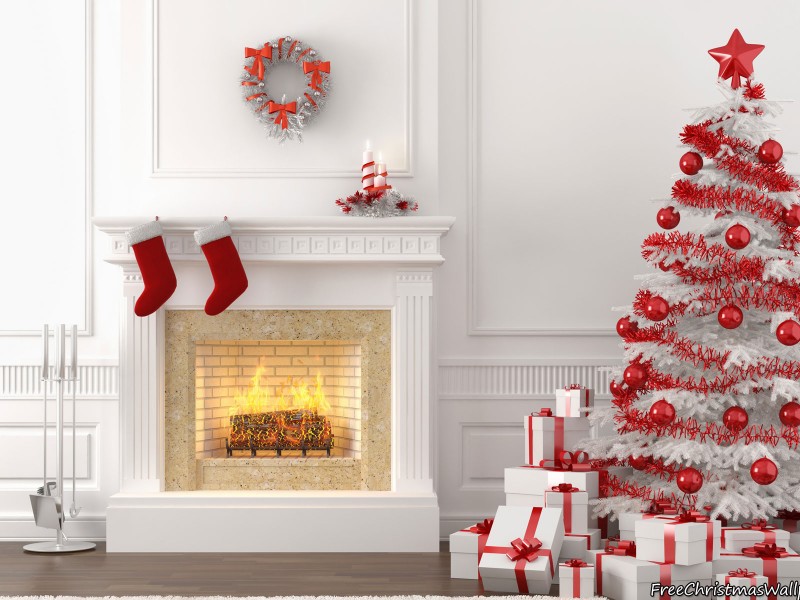 White Christmas Fireplace - 800x600